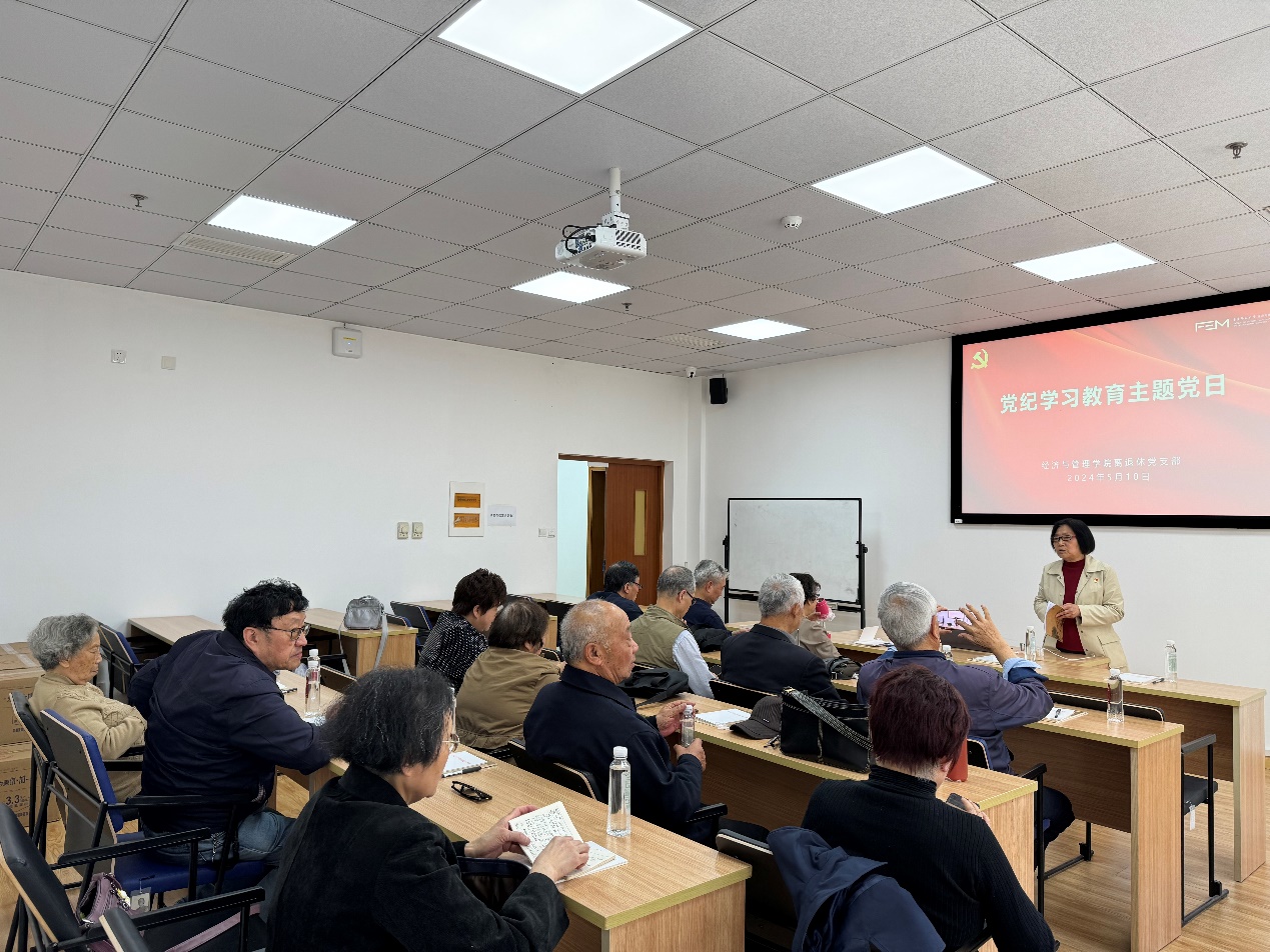 5月10日下午,bat365在线体育登录离退休党支部在理科大楼A326会议室开展党纪学习教育主题党日。活动由党支部书记徐丽华主持。