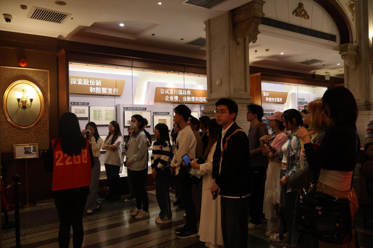 2024年5月8日下午,bat365在线体育登录经济学类本科生党支部响应学院“沪上繁花,奋斗有我”青年主题研学活动号召,组织学生党员、入党积极分子共赴上海中国证券博物馆开展“探寻流金岁月,谱写时代华章”主题党日活动,通过实地参访、集中学习、交流研讨等多种形式,深入学习沪上红色金融史。本次主题党日活动由支部书记王旭带队。