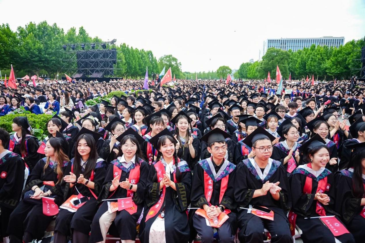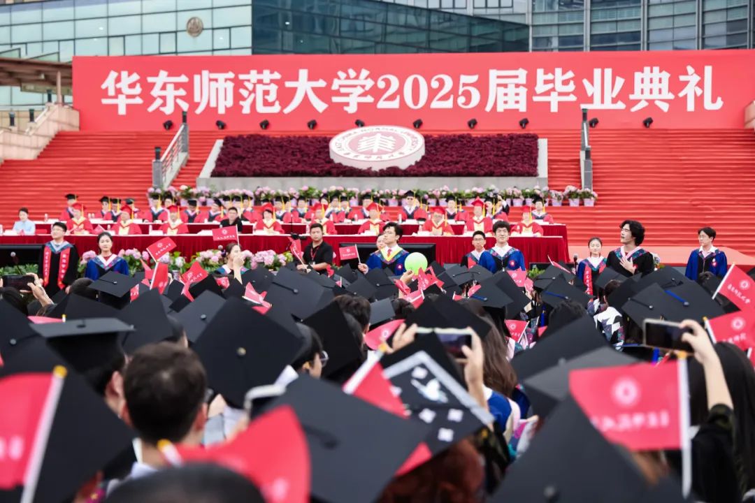 6月19日上午,华东师范大学2025届毕业典礼在闵行校区图书馆前大草坪举行。校领导梅兵、钱旭红、曹友谊、孟钟捷、戴立益、雷启立、施国跃、程静、吴健,校学术委员会和各专门委员会负责人,学部、院系、书院负责人,机关职能部门和直属单位负责人,校友代表,教师代表,员工代表,毕业生亲友等出席典礼,一起见证学子开启人生新征程的重要时刻。