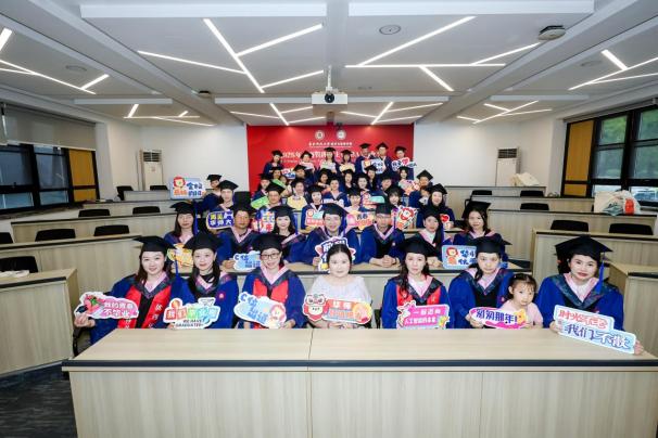 六月细雨,如丝如缕,悄然润泽着丽娃河畔的惜别深情;梧桐叶上晶莹的雨珠,折射出学院领导与导师们对毕业学子的殷切嘱托与深深期许。文史楼前、小教楼里,毕业生们身着学位服,头戴学位帽,与导师及辅导员们一起拍摄年级大合影、班级大合影和优秀毕业生合影,将这一融合纪念、荣耀与圆满的璀璨时刻永远定格。当那声“我们毕业了”穿云裂雨、响彻天际,不仅宣告一段学术旅程的圆满,也昭示着肩负理想、走向未来的铿锵誓言。