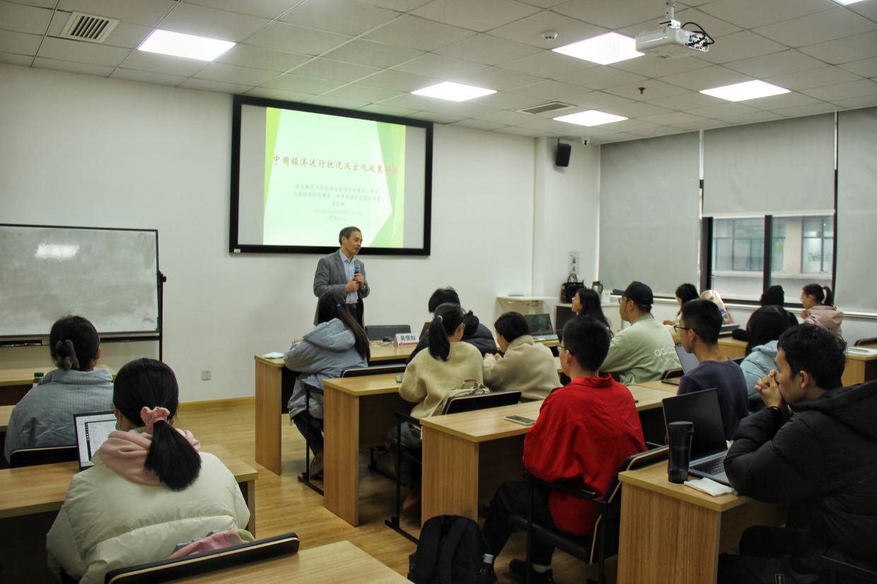 为深入学习贯彻党的二十届三中全会精神,2024年12月11日下午,bat365在线体育登录举办“初心讲堂”系列活动之“中国经济运行状况与宏观政策解读”主题报告,特邀金融学教授、博士生导师,经管学院关工委委员吴信如主讲。报告由学院学生党建服务中心骨干敖幸雨主持,吸引了来自各院系的30余名同学参与。