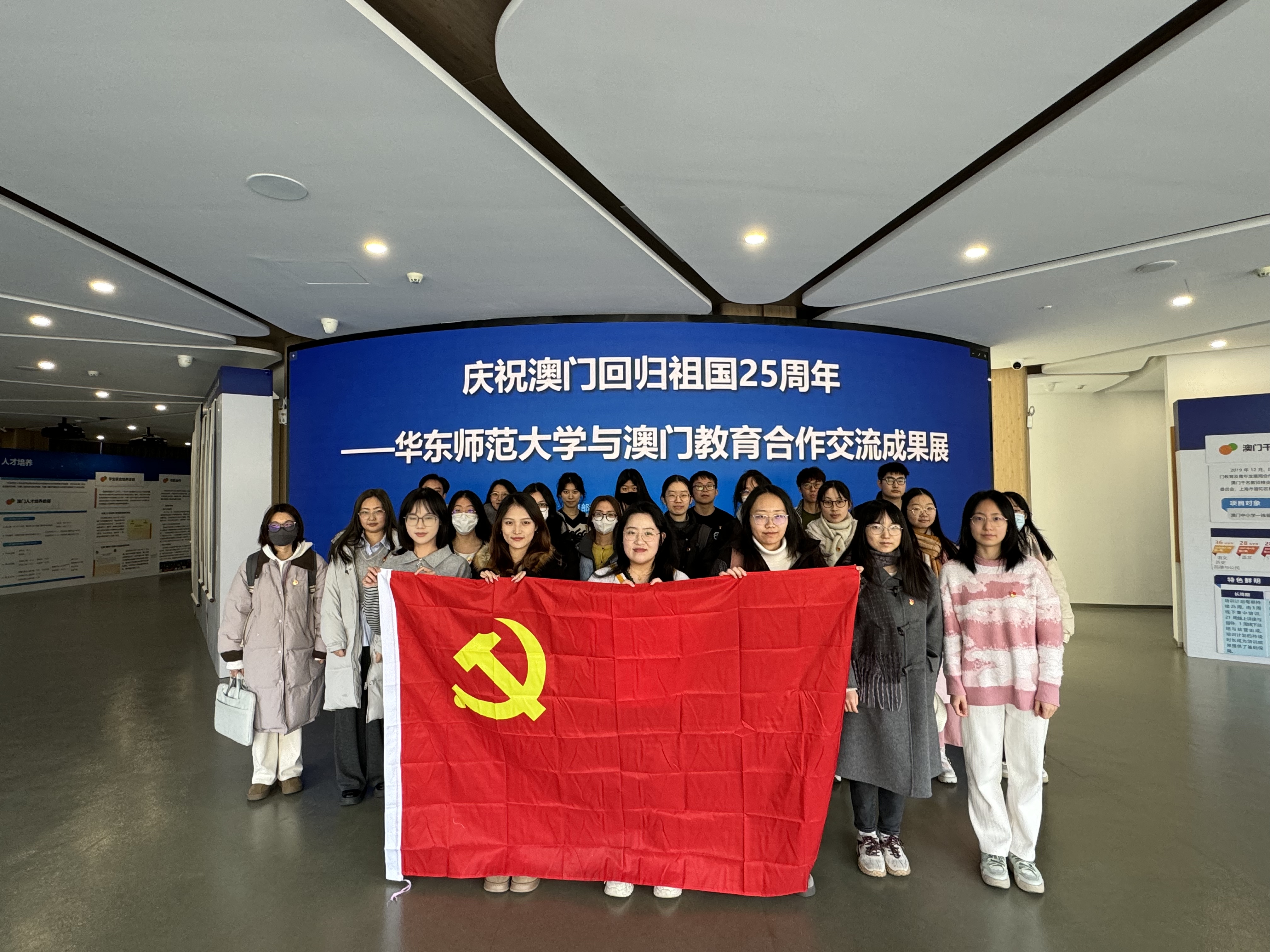 为深入了解华东师大多年来与澳门在教育培训和青少年交流方面的丰硕成果,感受沪澳两地的教育事业的蓬勃发展,2025年1月8日上午,bat365在线体育登录2024级金融专硕党支部党员参观“庆祝澳门回归祖国25周年——华东师范大学与澳门教育合作交流成果展”,开展现场教学。