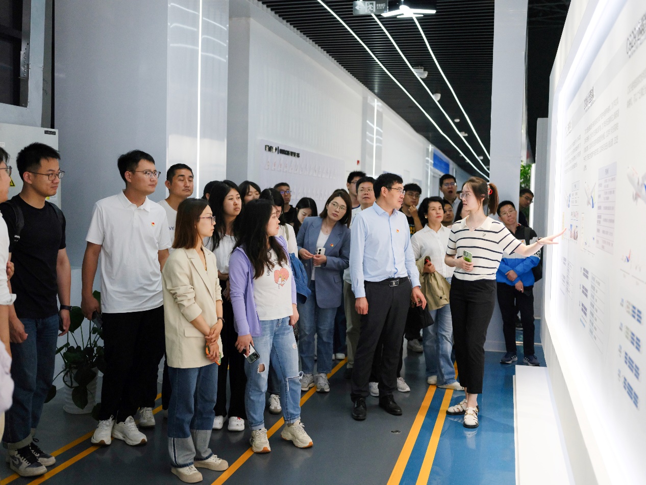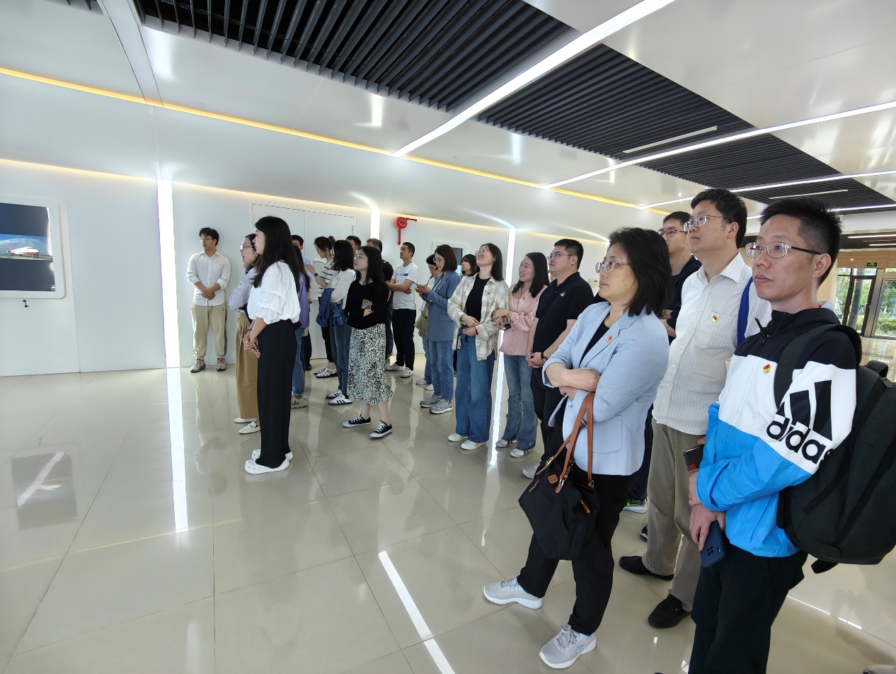 随后,师生党员前往中国商飞上海飞机设计研究院进行参观学习,这里不仅是我国航空工业设计的核心,更是技术创新的摇篮。中国商飞飞机设计研究院党支部姚西带领师生们观看了飞机研发与首飞的纪录片,该纪录片生动叙述了几代航空人为实现中国“大飞机梦”付出的艰辛和努力。在观看中,大家切身感受到了中国商飞的大飞机创业精神,对中国商飞坚持开拓创新、自主研制的航空强国精神深表钦佩。在参观和互动体验中,师生们参观了客户选型中心,登上了ARJ21、C919、C929三款飞机的展示样机,更全面地了解了机舱布局,并感受了乘坐环境,深入了解了飞机设计的过程,感受到了科研人员的智慧与汗水。