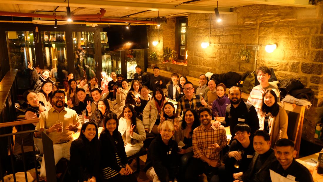 1月21日,利兹商学院主办方邀请访学团师生到Water Lane Boathouse参与和当地在读MBA学生交流的晚餐活动,并精心准备了一场别开生面的破冰活动—Bingo Card。这是一场充满趣味与惊喜的互动游戏,每个人手中都拿着一张Bingo Card,上面写满了各种有趣的个人信息,比如“在跨国公司工作”、“蛇年出生”、“会说三种语言”等。大家穿梭在人群中,寻找与卡片描述相符的人,通过简短而轻松的对话,迅速拉近彼此的距离。笑声与欢呼声此起彼伏,陌生的面孔在短短几分钟内变得熟悉起来,气氛瞬间被点燃。