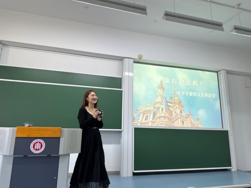 讲座伊始,王教授为同学们介绍了徐帷琅学姐的履历。徐帷琅现就职于迪士尼(中国),曾是联合利华最年轻品牌总监,获得了2017年联合利华全球8大最具故事性千禧一代的称号(中国唯一)。徐帷琅还是华东师大经管校友会副秘书长,兼任秘书长特别助理。在校期间,曾任校就业服务工作室总监,校广播台周四风铃草栏目主播,连续四年获得了优秀学生奖学金及校优秀学生干部、校优秀学生、校优秀团员等荣誉。