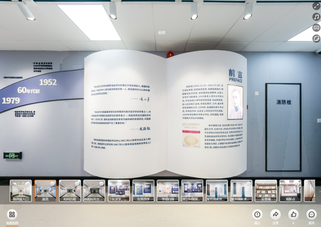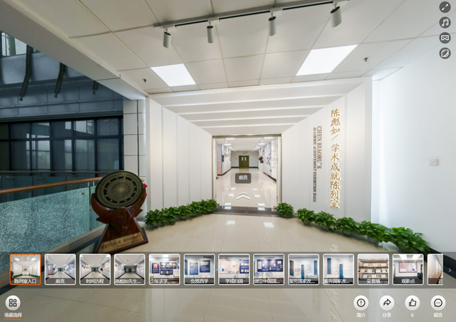 数字陈列室通过VR全景导览系统呈现出视觉直观、结构清晰、内容丰富的线上平台,鼓励师生足不出户实现线上“云参观”,学科思政的影响力得到进一步延伸,思政教育的辐射力和影响力得到进一步扩大。陈列室VR全景展现了陈列室布展的全部内容,图文并茂,让广大师生可以方便快捷的概览陈列馆室,同时在“云参观”内还设置了观看“彪如先生”宣传片展示环节,让阅览者有更深切的体会,从而进一步增强了学科思政工作的感染力和吸引力。