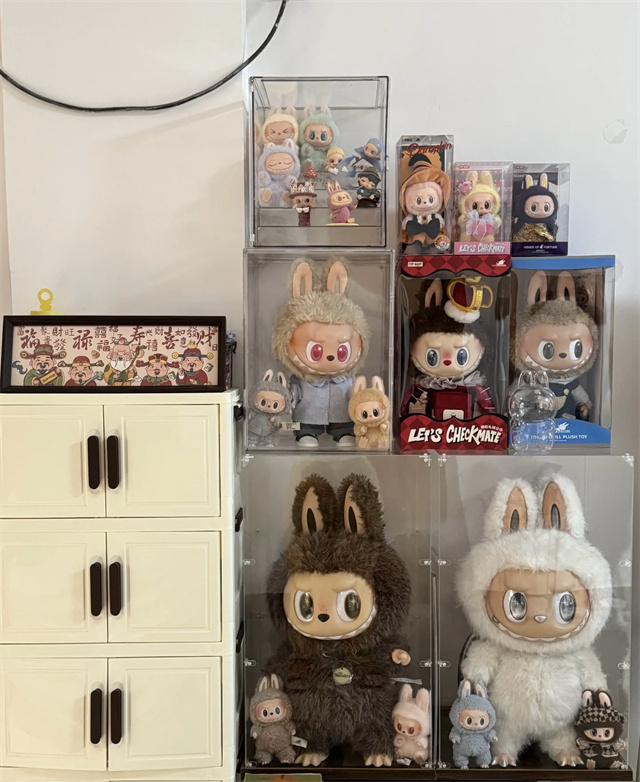 95后陈开开最近刚“入坑”。她一口气买下了Labubu的一代、二代,还有三个大号版本。“它看起来有点邪门,但越看越可爱,我现在每天都给它们搭配娃衣、戴帽子、拍照晒娃。”26岁的马嘉庆原本只是偶尔买点手办,直到Labubu出现,开始了“疯狂买买买”:“它的设计很搞怪,加上盲盒机制,我很喜欢未知的东西。”