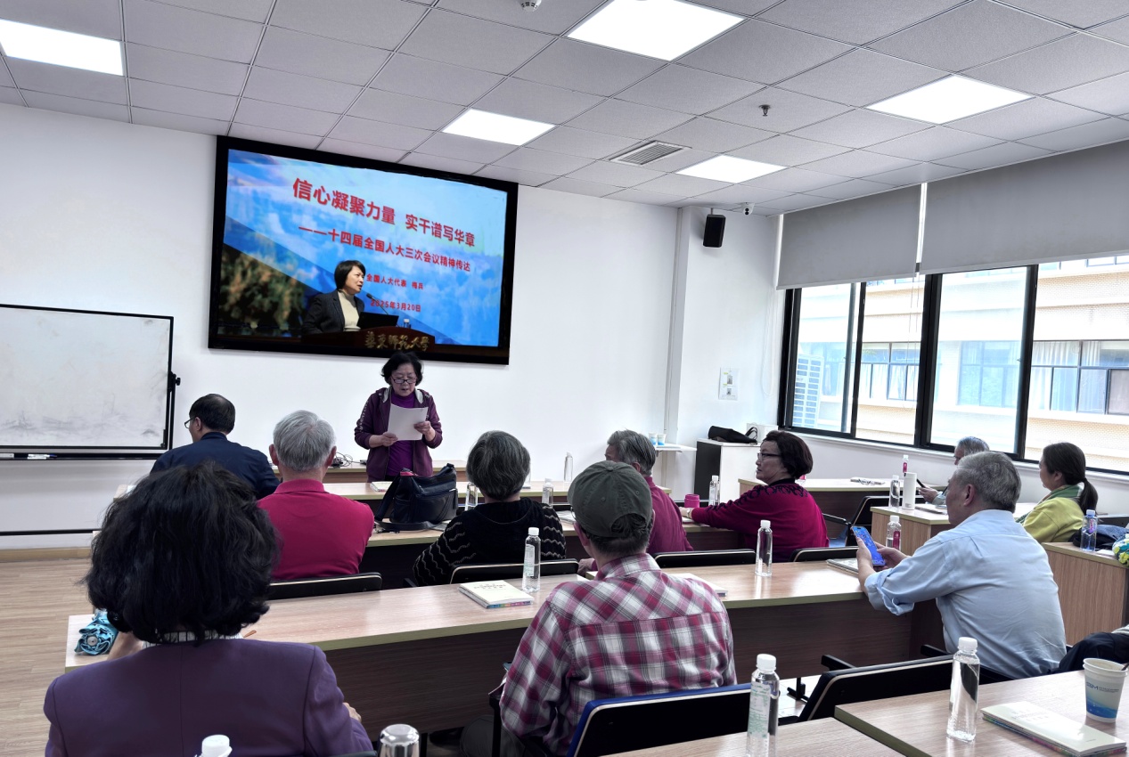 支部党员认真观看聆听了全国人大代表、学校党委书记梅兵向全校离退休干部传达全国两会精神的影像资料。梅兵以《信心凝聚力量 实干谱写华章》为题,详细传达了十四届全国人大三次会议的基本概况,重点解读了两会期间习近平总书记的重要讲话精神,介绍了自己履职和参会体会,讲述了热点议题及其背后的故事。党员同志纷纷表示,梅兵书记报告内容丰富详实、重点突出,提振信心、深受鼓舞。我们要认真学习全国两会精神和习总书记在两会期间的系列重要讲话精神,把握核心要义、加深理解体悟,把思想和行动统一到党中央对发展新质生产力、对进一步全面深化改革、对教育事业发展等重要部署上,为教育强国建设贡献智慧和力量。