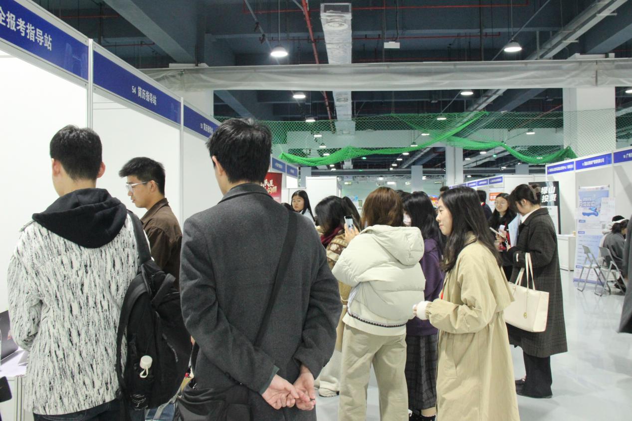 招聘会现场氛围热烈,同学们在各展位前与用人单位展开深度交流并投递简历。各用人单位对于学生们关心的岗位要求、能力匹配等问题进行了一对一详细解答。双方都通过本次活动加深了对彼此的了解,助力供需匹配效率提升。招聘会现场还有众多非毕业班的高年级学生,感受求职氛围、了解招聘需求及谋划实习岗位,为求职做好前置准备。