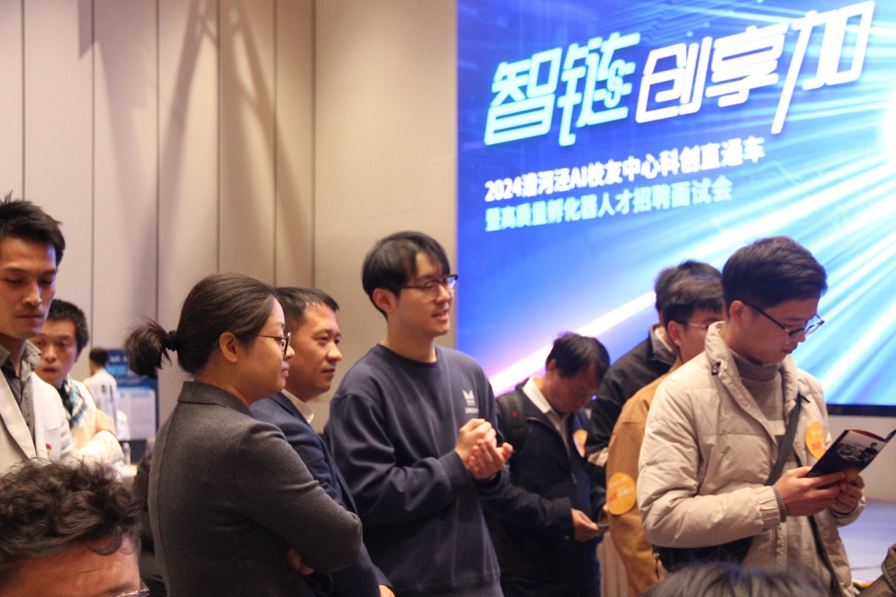 仪式后,师生一行参与了在漕河泾园区会议中心举行的高质量孵化器人才招聘面试会。在企业及重大项目现场宣讲结束后,同学们热情高涨,与入驻企业一对一交流面试。据悉,面试会邀请了漕河泾AI校友中心近20家入驻企业参会,提供超40个校招、社招岗位。