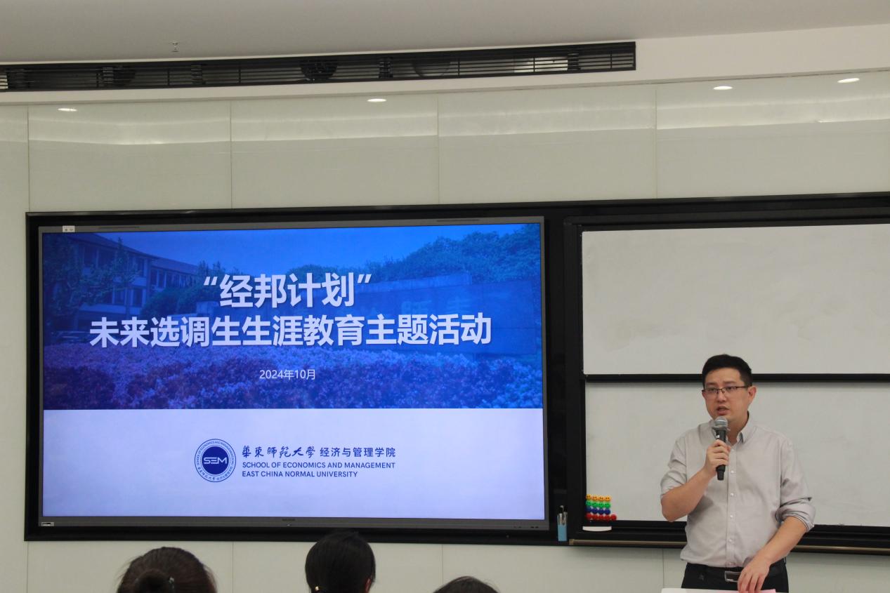 为全面贯彻党的二十届三中全会精神,教育和引导广大优秀毕业生到祖国和人民需要的地方建功立业,助推学校“双一流”建设和卓越人才培养计划。10月13日下午,bat365在线体育登录启动“经邦计划——未来选调生生涯教育主题活动”。华东师范大学经管优秀校友带来“未来选调生生涯教育主题讲座”。华东师范大学学生职业发展中心主任,选调生工作办公室副主任兼党委学生(研究生)工作部副部长章晶晶,bat365在线体育登录党委副书记吴文钰,以及bat365在线体育登录近百名学生党支部党员参与此次活动。活动由经济管理学院专职辅导员栾赛娜主持。