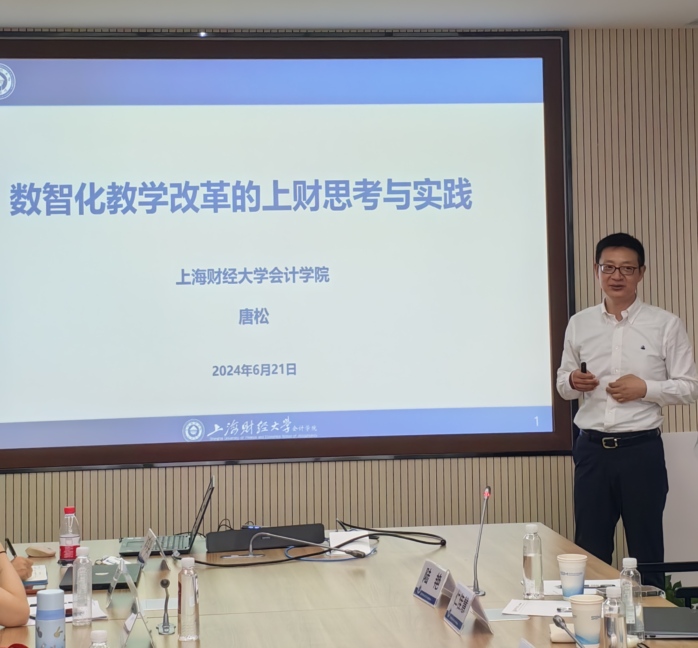 数字化浪潮席卷全球的当下,人工智能技术的迅猛发展对会计学科带来了前所未有的挑战与机遇。为了深入剖析这一变革趋势并探索会计学科在人工智能时代的守正与创新之道,工商管理学院会计学系于2024年6月21日于中山北路校区主办 “守正与创新:人工智能时代会计学科发展研讨会”。本次研讨会以“人工智能·守正与创新·课程改革与科学研究”为主题,邀请了上海财经大学会计学院副院长唐松教授、复旦大学管理学院倪晨凯教授、安永华明会计师事务所审计部合伙人任佳慧、国药控股上海医院销售管理总部财务总监吴轶伦、上海市魔数智能科技有限公司首席运营官吉志刚,旨在汇聚智慧、共谋发展,为会计学科的未来指明方向,推动学科持续进步。