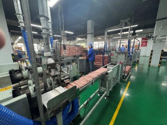 随后,进入工厂实地参观,了解铅笔的生产工艺和制造流程,从板材、刨槽、胶芯、刨杆、磨光等,再到油漆印花、塑套、皮头。同学们进入生产车间内部,近距离观看铅芯制作工序、切槽木板工序和油漆工序。最后,同学们亲自体验了塑套工序,为自己的铅笔选择不同的包装和皮头,并现场体验动手安装。