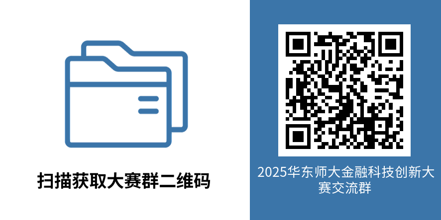 3、交流咨询:请有意向参赛的同学扫码获取“2025华东师大金融科技创新大赛”微信群二维码,跟进大赛流程、讲座培训以及交流咨询。申请添加时,请注明“院系+姓名”。