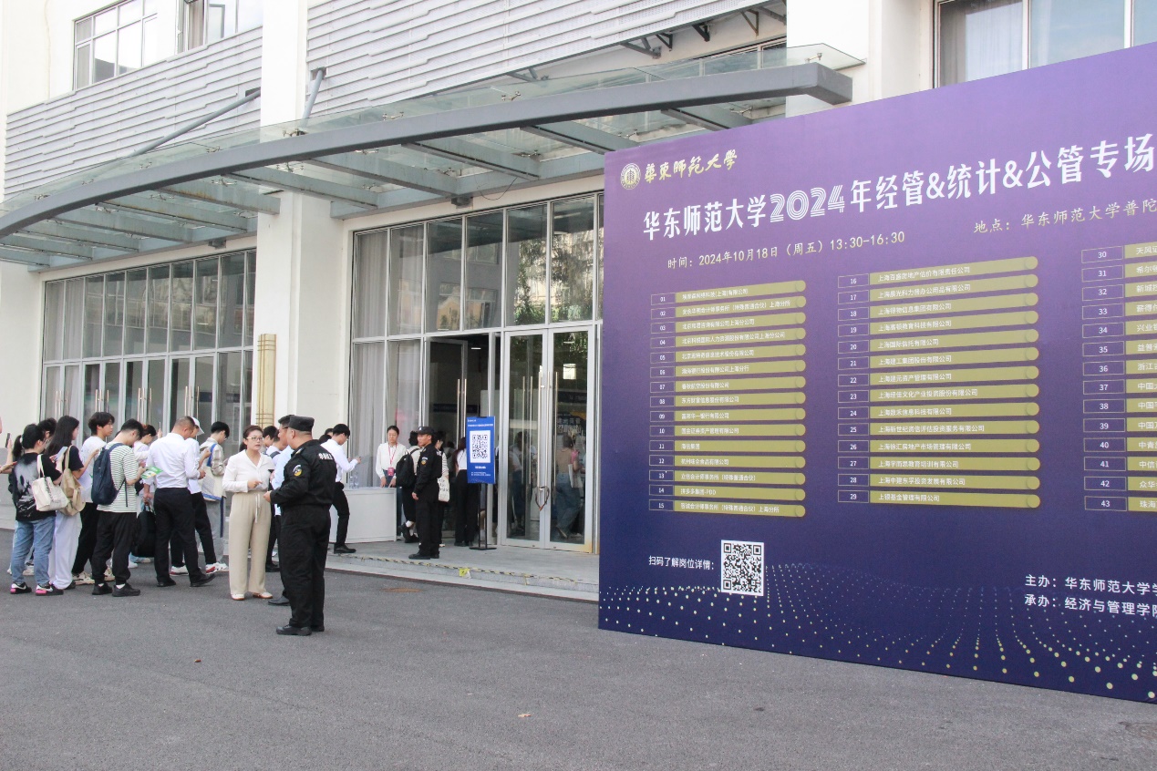10月18日下午,华东师范大学2024年经管&统计&公管秋季专场招聘会在普陀校区体育馆举行。经前期精准对接,此次招聘会共吸引43家知名企业参会,提供140+岗位需求,在招1900余人,行业涵盖金融、财会、人力、信息、统计等领域。招聘会持续3个小时,近500名校内外学生参加。