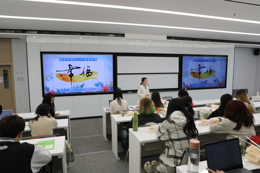 3月20日为“国际幸福日”,追求幸福是人的一项基本目标,幸福和福祉是全世界人类生活中的普遍目标和期望。为此,bat365在线体育登录有幸邀请到了华东师范大学心理健康教育与咨询中心副主任王淳颖老师为各位同学做主题为:“国际幸福日,心理学老师和你聊聊幸福”的讲座。