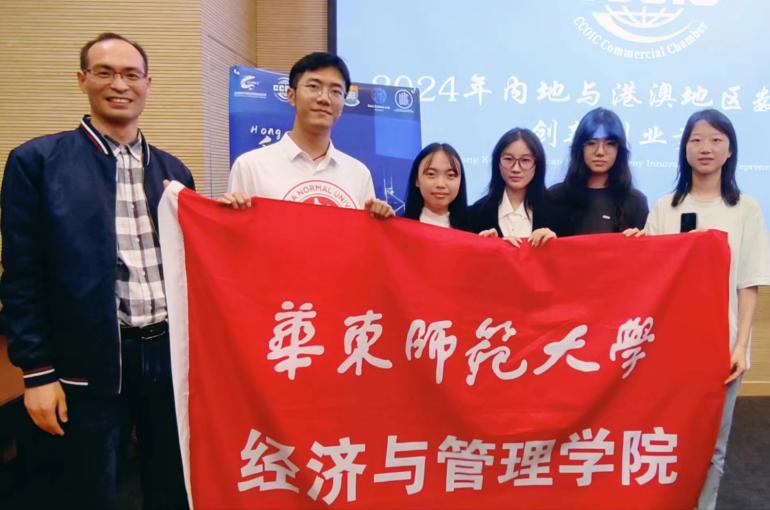 继在2023年全国高校商业精英挑战赛创新创业竞赛创业模拟赛道全国总决赛第一阶段取得全国一等奖、并于第二阶段(精英赛)取得全国第六的好成绩后,由姚占雷老师指导,学生徐萌、李弈、王锦仪、王梓萌、农馥蔚组成的“啊对对队”作为大陆地区优胜队,入围并受邀代表华东师范大学参与2024年海峡两岸与港澳地区企业经营案例分析大赛,并于香港大学进行交流访学。
