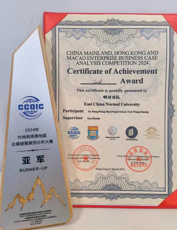 3月23日,由中国贸促会商业行业委员会、香港大学统计及精算学系数据科学实验室等联合主办,国际模拟商业管理学会、大湾区粤港澳人才协会协办的2024年内地与港澳地区企业经营案例分析大赛在香港大学圆满落幕。经激烈角逐,华东师范大学代表队最终脱颖而出,一举斩获大赛金奖,获得该比赛亚军。
