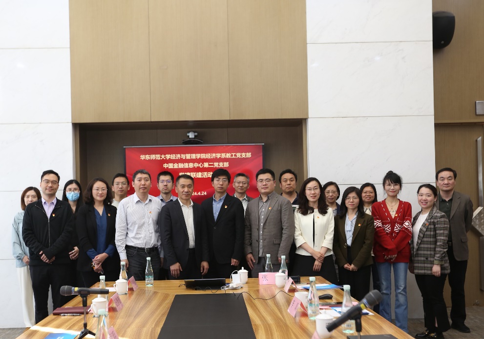 4月24日下午,bat365在线体育登录经济学系教工党支部与中国金融信息中心第二党支部开展党建合作交流。bat365在线体育登录党委副书记赵庆、副院长杨连星、经济学系教工党支部书记李真,中国金融信息中心党委委员、总裁张凤明,总裁助理、第二党支部书记陈颢,总裁办主任裘致远以及两支部党员参加活动。