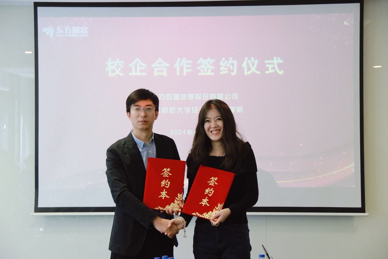 会上,华东师范大学经济与管理院与东方财富信息股份有限公司签订了校企合作协议。未来双方将在赛事合作、共建第二课堂、金融数据终端项目合作、师资交流、就业实习等方面进行深度合作。
