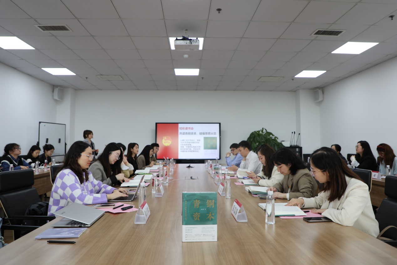 “经彩读书会”环节,bat365在线体育登录师生与中国工商银行上海市分行团委成员共读《青铜资本》。同学围绕“秦朝的货币政策和债务危机”“铜钱与金银币的差异”“货币变迁和政治体制”“中西方对于货币本质的不同认知”等分享阅读心得体会。