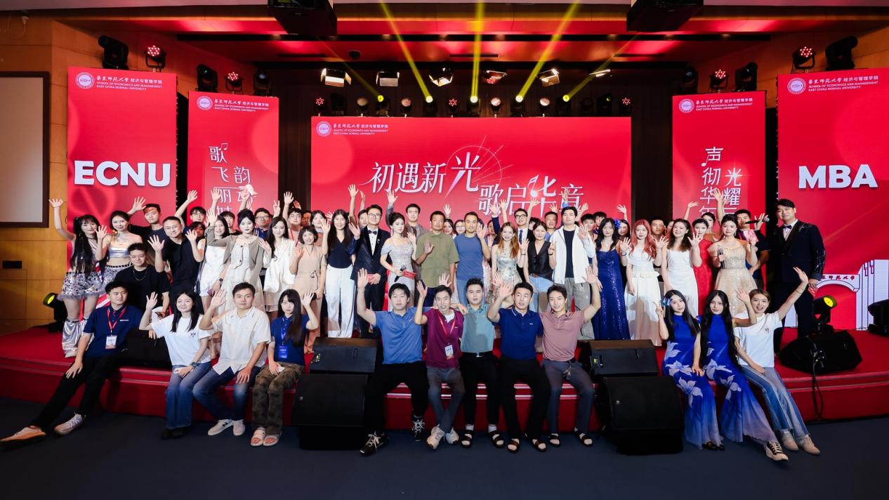 新生班级风采展示环节结束后,历经数月筹备的“初遇新光,歌启华章”2025MBA迎新歌会隆重启幕。歌会分为“初澜映心、和韵共生、同心筑梦”三个篇章,节目编排匠心独运,舞台视觉绚丽多彩。歌曲演唱、舞蹈串烧、丝竹潮玩等多元形式交相辉映,为观众奉上一场融合艺术与青春的视听盛宴。