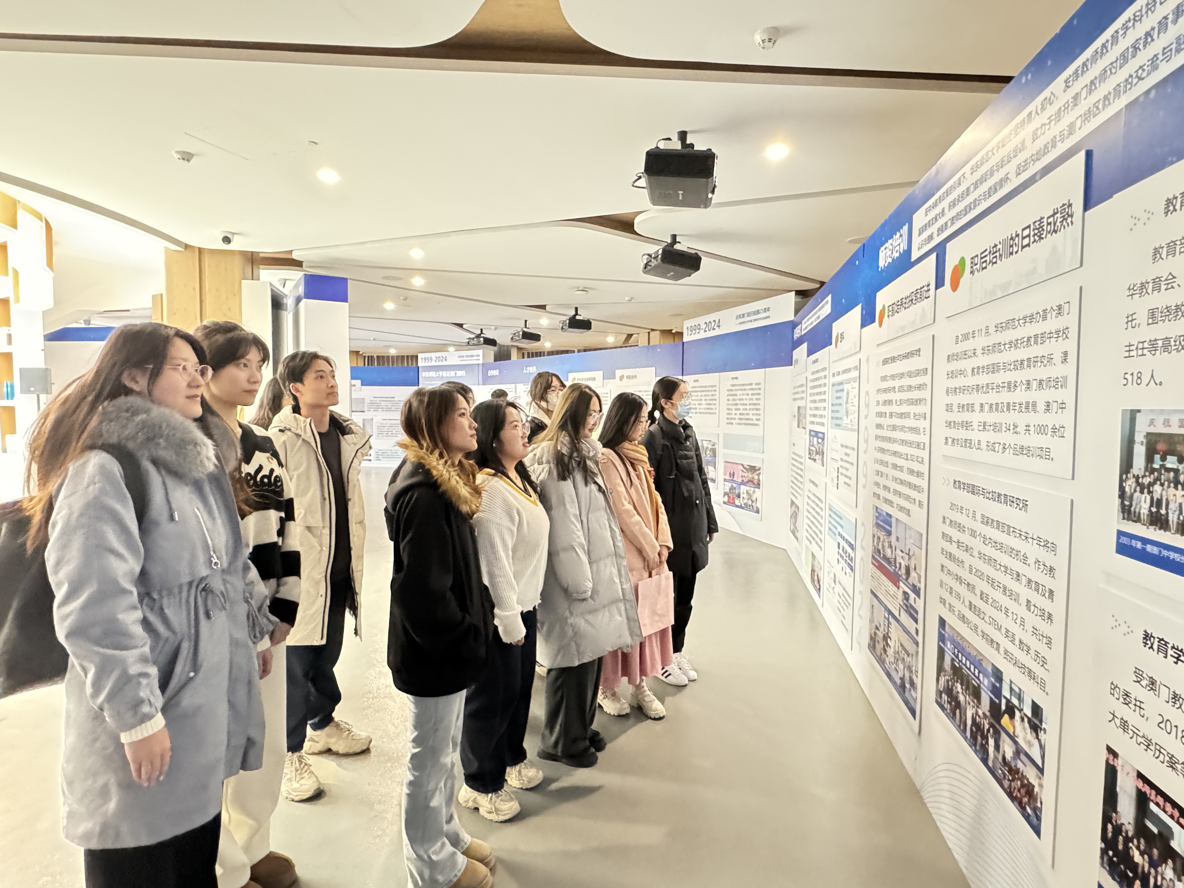 为深入了解华东师大多年来与澳门在教育培训和青少年交流方面的丰硕成果,感受沪澳两地的教育事业的蓬勃发展,2025年1月8日上午,bat365在线体育登录2024级金融专硕党支部党员参观“庆祝澳门回归祖国25周年——华东师范大学与澳门教育合作交流成果展”,开展现场教学。