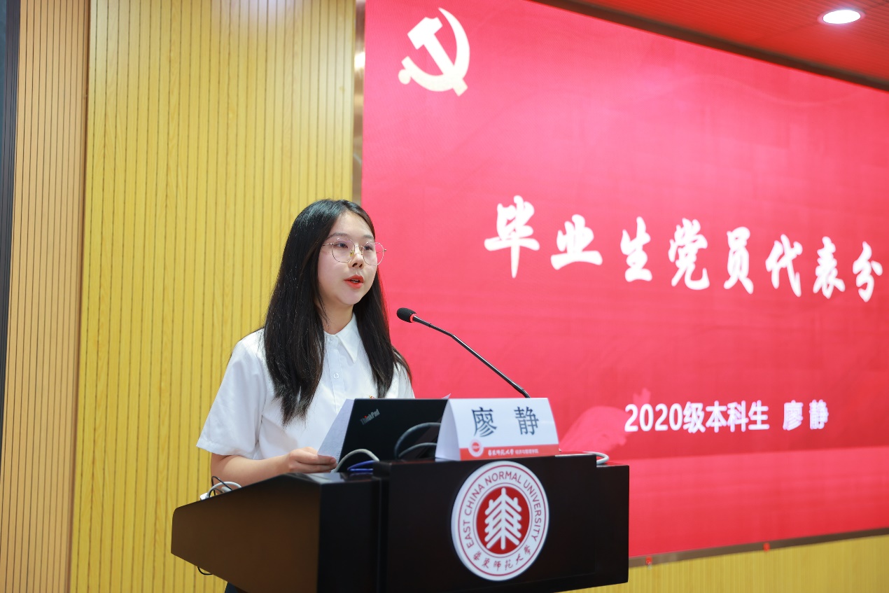2021级硕士研究生蓝齐芳、2020级本科生廖静作为毕业生党员代表发言。