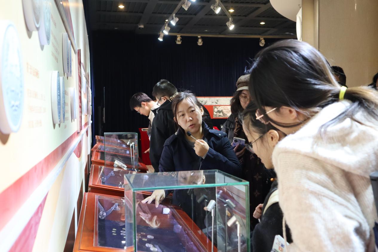 在博物馆近代造币工艺厅、当代造币厅等展厅,从建厂以来各个时期具有代表性的早期钱币模具和设备,钱币的造币工艺和流程,从近代银元到现代如北京奥运会、杭州亚运会等重大赛事纪念币,一枚枚钱币串联起上海造币的近现代发展史。参访中,师生不仅看到了丰富的档案馆藏,更亲身体验了用锤子给钱币捶打刻印的过程。