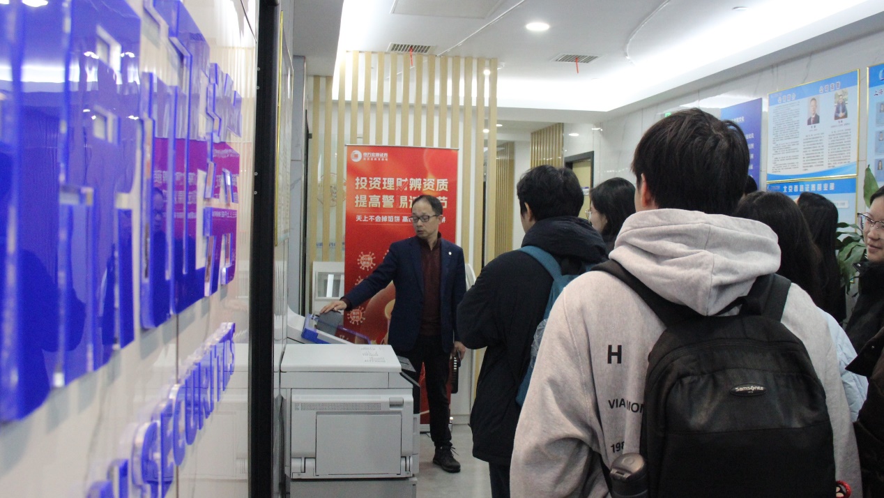 随后,在工作人员的引导下,师生们有序参观了申万宏源的办公区域,近距离了解证券公司的日常运营环境和业务流程,对金融机构的实际运作有了更直观的认识。