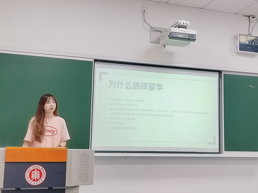 2020级会计学本科朱思琪为同学们分享了出国留学的经验,她强调申请最重要的就是GPA,商科普遍85以上,需要认真准备,同时也要重视语言、实习和竞赛。不同项目有不同的语言要求,需要大家对应准备;实习3段专业对口为佳,注意部分学校需要强制提交实习证明;竞赛有2-3段对应项目即可,增强软实力。她也就出国留学申请与面试作了介绍,选校选项目可以分为“保底+主申+冲刺”,文书要注意生动性和逻辑性,在面试前可以多多积累面经和培养英语语感,同时要注意中国香港、新加坡、英国、美国主申请时间不太相同,且不同院校的申请受理方式有所不同,在申请每个项目时,要合理安排投递时间。