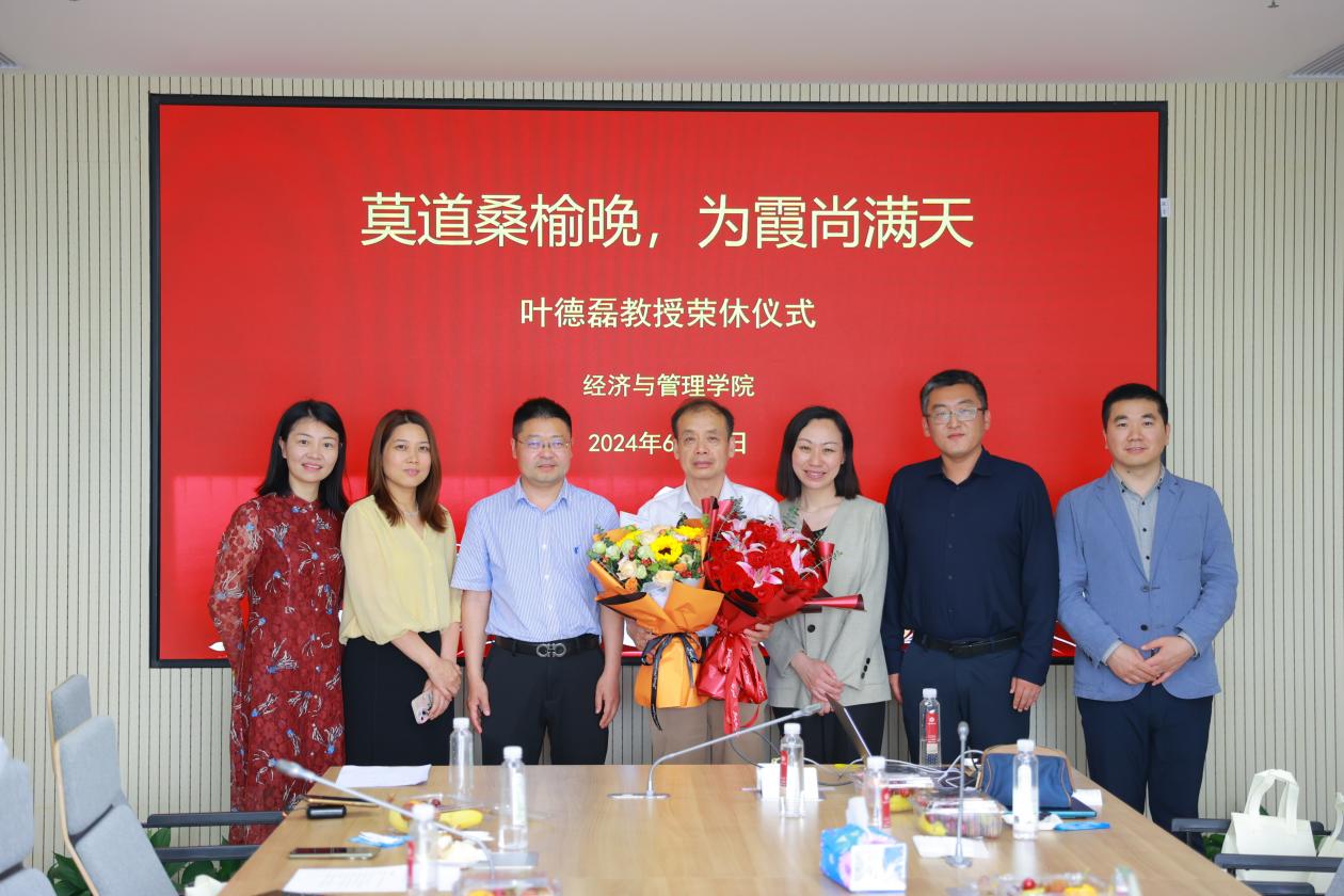 6月12日下午,bat365在线体育登录在理科大楼A814会议室举行荣休仪式,以最隆重、暖心的方式感恩、礼敬和祝福叶德磊教授。bat365在线体育登录党委书记岳华、院长殷德生、党委副书记赵庆、经济学系教职工及校友代表共计三十余人,共同见证了这一温馨时刻。